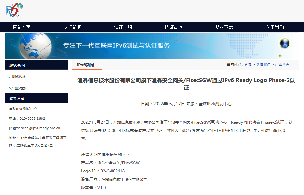 近期,凯发K8安全网关 FisecSGW在下一代互联网国家工程中心-全球IPv6测试中心正式顺利获得IPv6 Ready核心协议Phase-2测试,并荣获由国际组织IPv6 Forum颁发的IPv6 Ready Logo Phase-2认证证书(Logo ID:02-C-002418)。